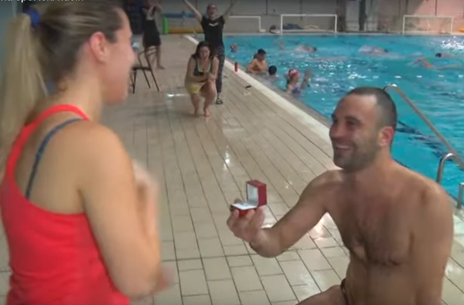 Naime, tokom snimanja treninga kluba za sinhrono plivanje "Tent", u trenutku kada se Neda Cupara, trener obrenovačkih devojaka pripremala da saopšti utiske sa najnovijeg takmičenja, sport je pao u drugi plan. Njen dugogodišnji momak, vaterpolista Miloš Stanišić izronio je iz bazena sa vereničkim prstenom i zaprosio svoju ljubav.