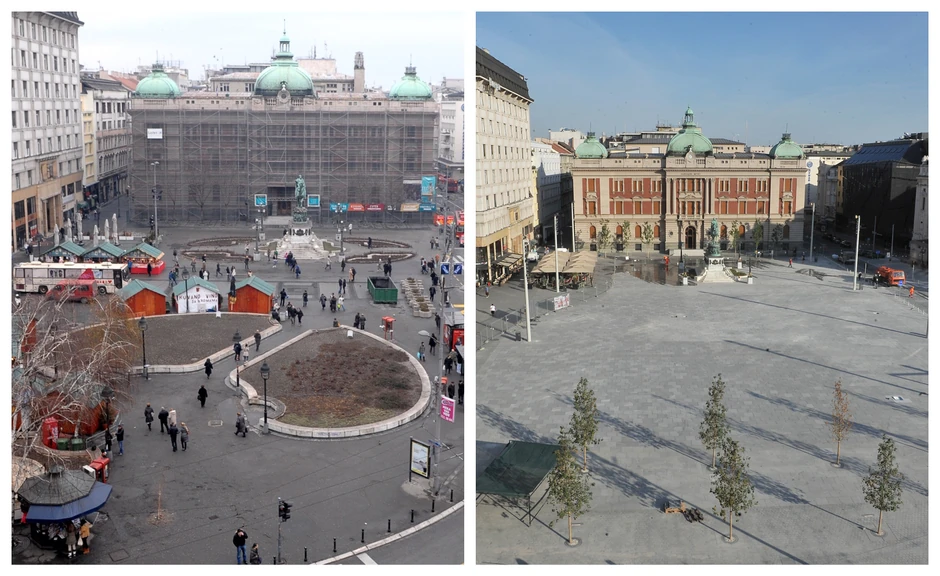 - Posle 150 godina, Trg republike napokon dobiće pravu fizionomiju. To će biti zona usporenog saobraćaja, zbog čega smo i stavili granitne kocke. Trg će biti opremlJen potapajućim stubićima sa kamerama, imaće "pametne klupe", besplatni vaj-faj - istakao je Vesić.