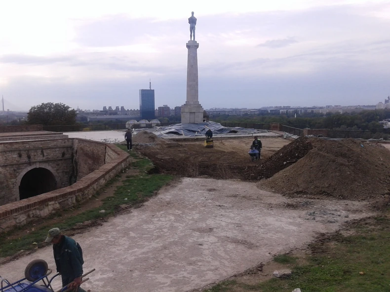 Radnici "Zelenila Beograd" već danima sređuju plato oko spomenika "Pobednik" na Kalemegdanu.