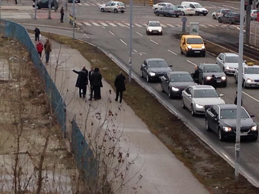 Četiri automobila bila su parkirana u krajnjoj desnoj traci dok je "delegacija" vršila obilazak.