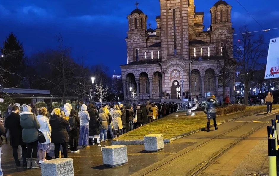 Od jutarnjih časova stvoren je red vernika, dug nekoliko stotina metara do ulaza u hram Ruske pravoslavne crkve u Beogradu.