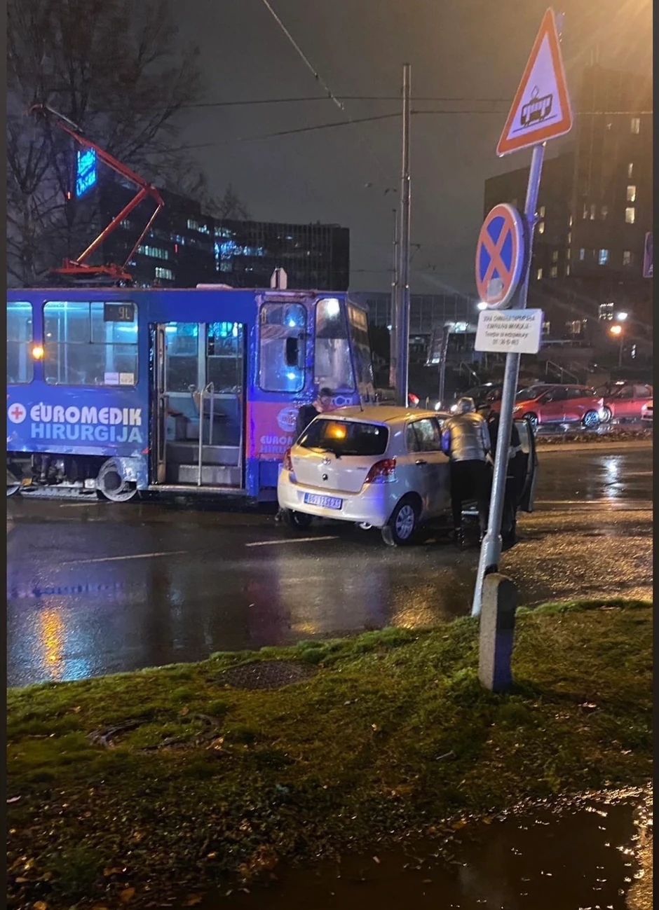 Na Novom Beogradu kod Tržnog centra Ušće oko 18 časova došlo je do sudara tramvaja i automobila u kojem su dve osobe su tada povređene.