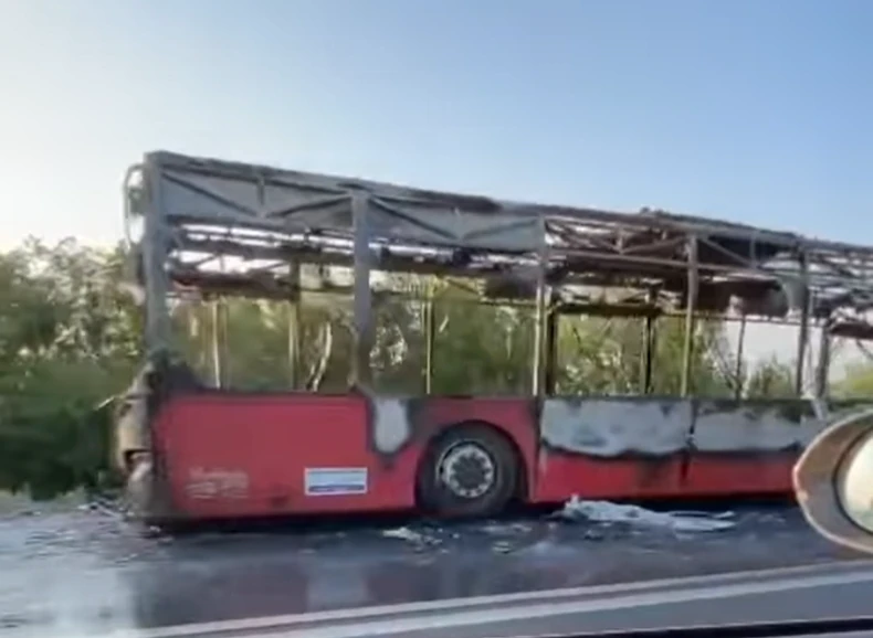 Kako se može videti na stranici, od autobusa je ostala samo gola metalna konstrukcija.