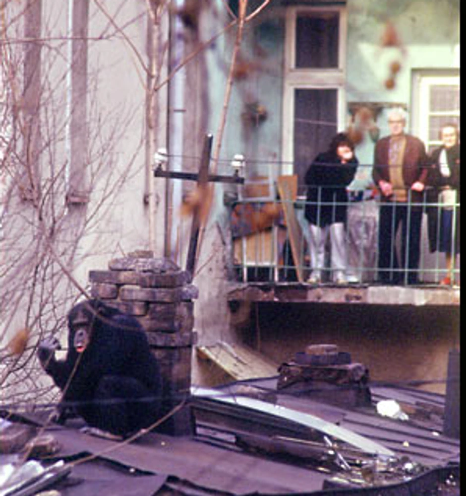 Tada je preskočio ogradu vrta i krenuo ulicom uz navijanje i skandiranje radnika obližnje fabrike i učenika Srednje mašinske škole "Petar Drapšin", koji su, videvši ga kroz prozor, počeli da napuštaju pogone i učionice.