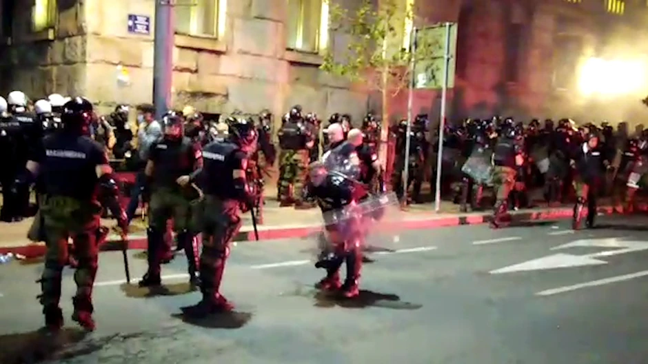 Na početku Bulevara kralaj Aleksandra došlo je do sukoba građana i Žandarmerije. Najpre su kamenice letele ka policiji koja nije reagovala, ali su potom iz oklopnih vozila ispaljeni suzavci kako bi se demonstranti rasterali. Međutim, talas suzavca je usled vetra stigao i do pripadnika Žandarmerije, koji su zbog toga počeli da se povlače unazad i kašlju. Neki od demonstranata i povraćaju usled jakog dejstva suzavca.