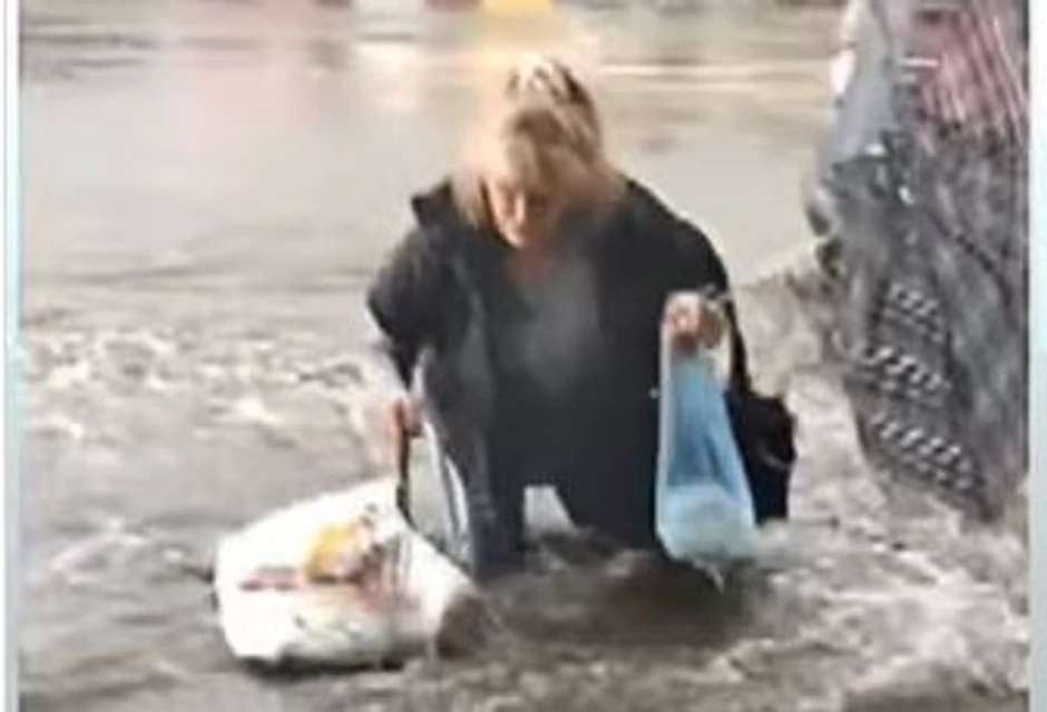 Stravičan snimak iz Mladenovca, objavila je Instagram stranica 192.rs. Na njemu se vidi žena koju je kod glavne autobuske stanice oborila bujica koja se slivala niz ulicu, ona je nekako uspela da ustane i izvuče se iz vode.