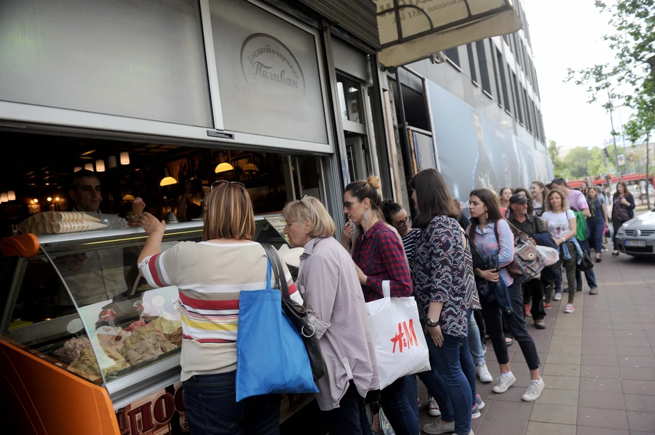 Ispred "Pelivana" već oko 16 časova stvorio se red, sve do raskrsnice sa Resavskom. I mladi i stari, došli su da se posluže ovom ukusnom ledenom poslasticom.