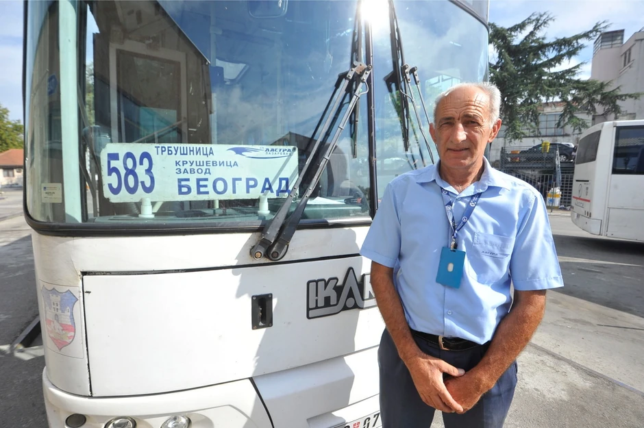 - Nije mi teško, volim svoj posao - priča Milorad Branković (59) vozač lazarevačkog SP "Lastra" na liniji 583 koji svakodnevno autobusom u jednom pravcu pređe 73 kilometra, priča svakog dana vozi putnike od Trbušnice do centra grada.
