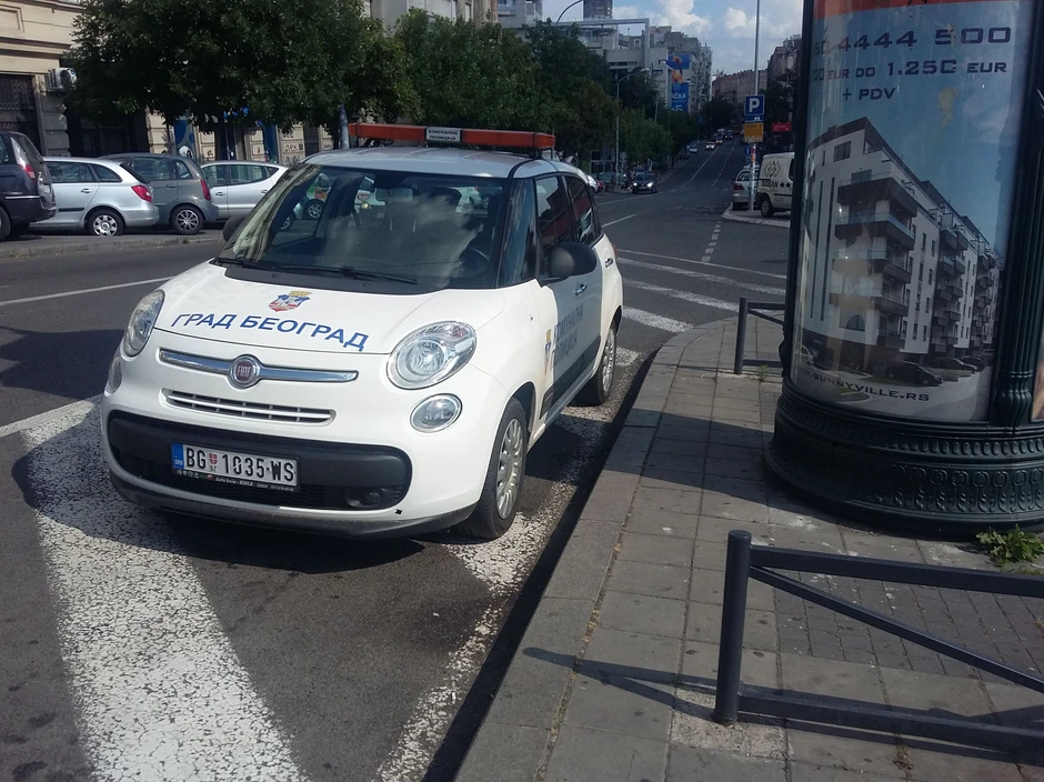 Naš reporter fotografisao je automobil, koji je bio bez vozača i policajaca u 16.20 na okretnici Zeleni venac, kod razdelnog ostrva u Kraljice Natalije.