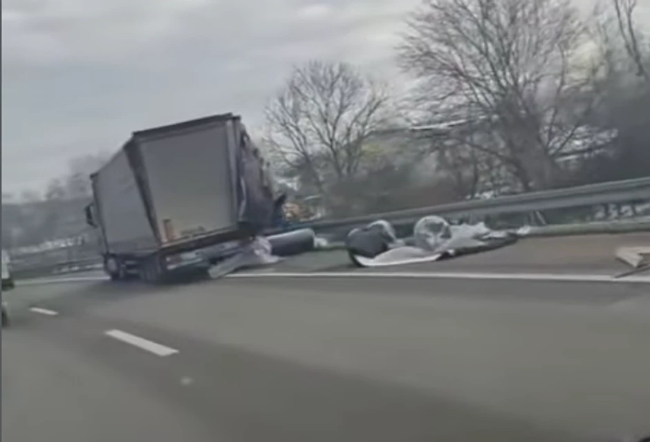 Zbog siline udaraca, stvari iz prikolice kamiona su izletele i završile razbacane svuda po putu.