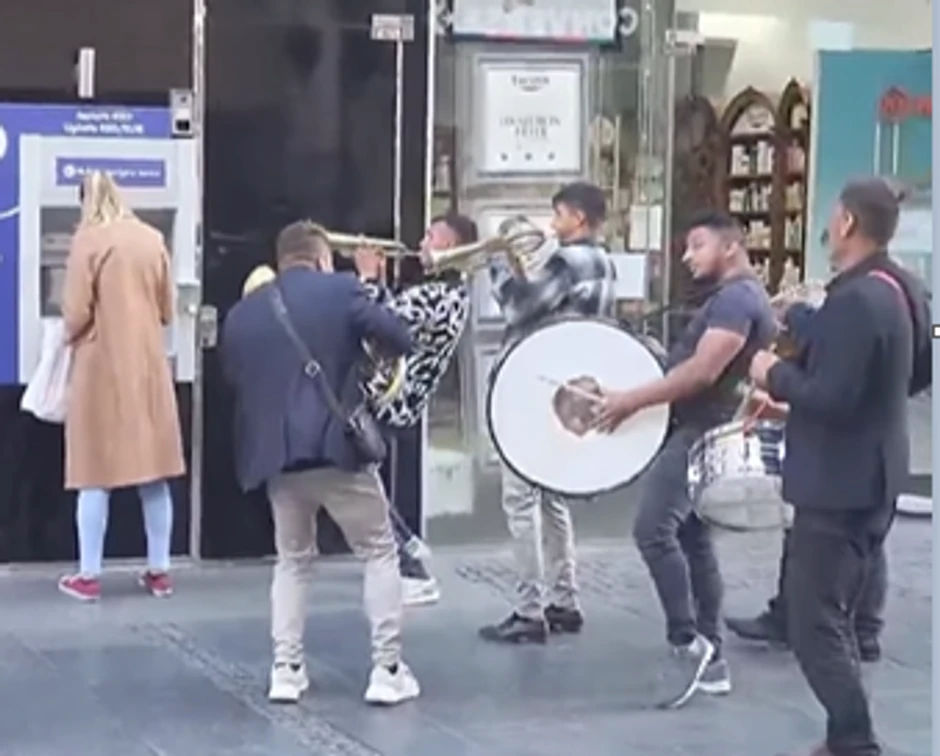 Na videu koji kruži društvenim mrežama vidimo kako devojka stoji kod bankomata u Knez Mihailovoj ulici dok su oko nje trubači. Ostaje pitanje da li je devojka koja je stavljena pred "svršen čin" nagradila dosetljivost ovih momaka.