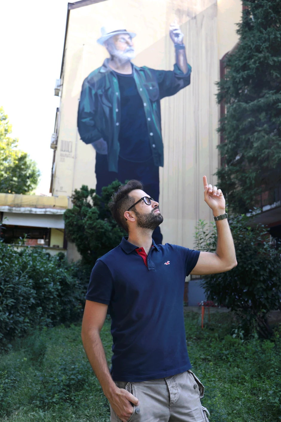 Na prvoj lokaciji u Ulici Partizanske avijacije 15, zatekli smo Pijanistu koji nam je opisao mural na ovoj adresi. Završio ga je za dva dana, radeći od 7.00 ujutru do 17 sati, bez bilo čije pomoći u finansijskom smislu, u vidu institucija ili Grada, ali uz pomoć nekih prijatelja, kako kaže.
