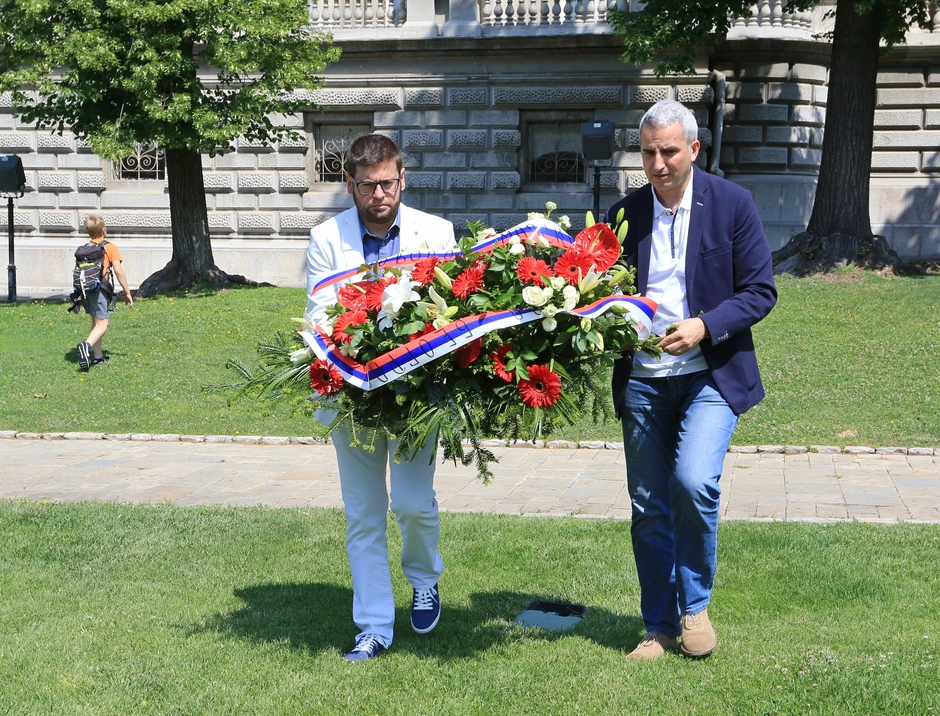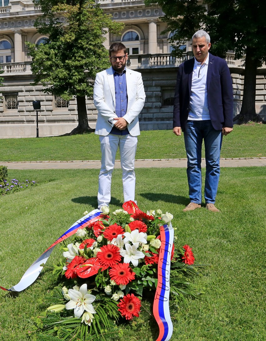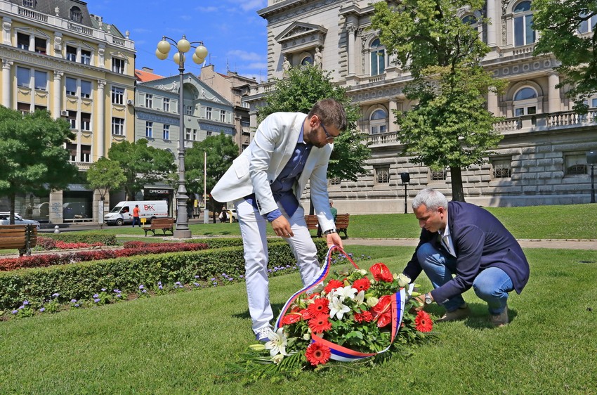 Pomoćnik gradonačelnika Beograda Andreja Mladenović i gradski sekretar za kulturu Ivan Karl položili su danas, tim povodom, cveće na prostoru između zgrade Predsedništva Srbije i Starog dvora.