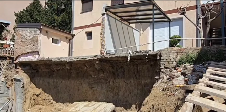 Naime, pre mesec dana, usled radova na susednoj parceli, došlo je do urušavanja betonskog zida i obrušavanja zemljišta ispod objekta, zbog čega sada deo dvorišta porodice praktično "visi u vazduhu", kako se može videti na video snimku.