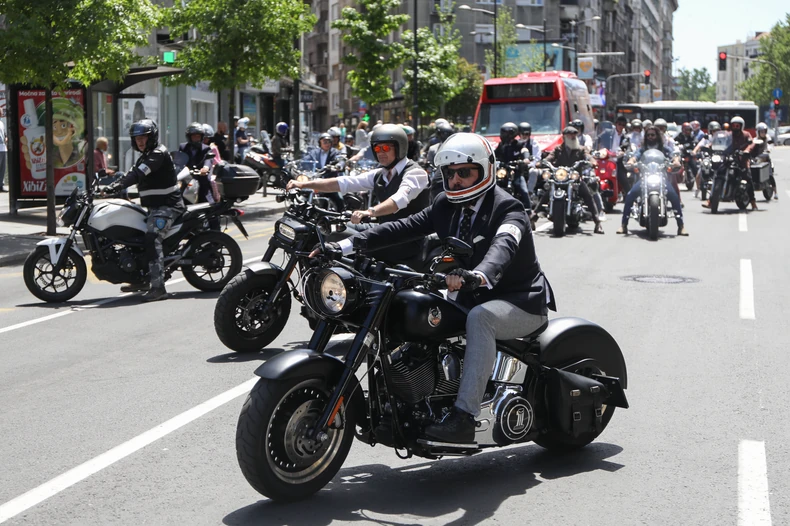 Za razliku od dosadašnjih bajkera koje smo navikli da vidimo u kožnim jaknama i džinsu, ova grupa muškaraca oduševila je građane upravo zbog svog elegantnog stajlinga.