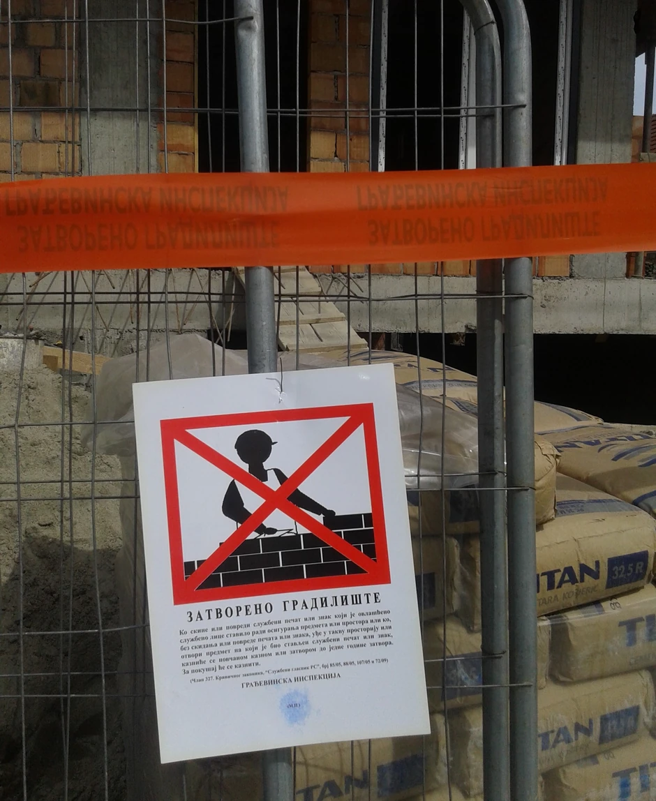 Objekat dimenzija 2po+pr+4 zatvoren je trakom i službenim pečatom, a inspekcijski nadzor je u toku.