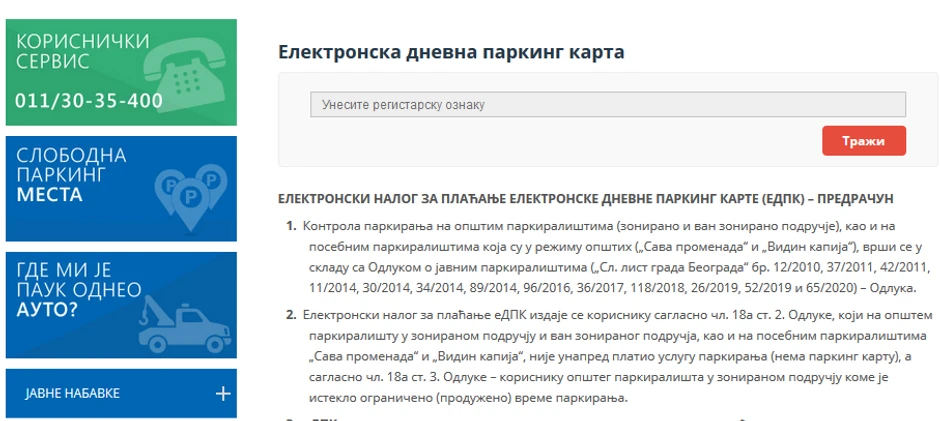 Tada je neophodno uneti registraciju vašeg vozila, i onda ćete dobiti informacije da li postoje neplaćene kazne (dnevne parking karte) ili ne.