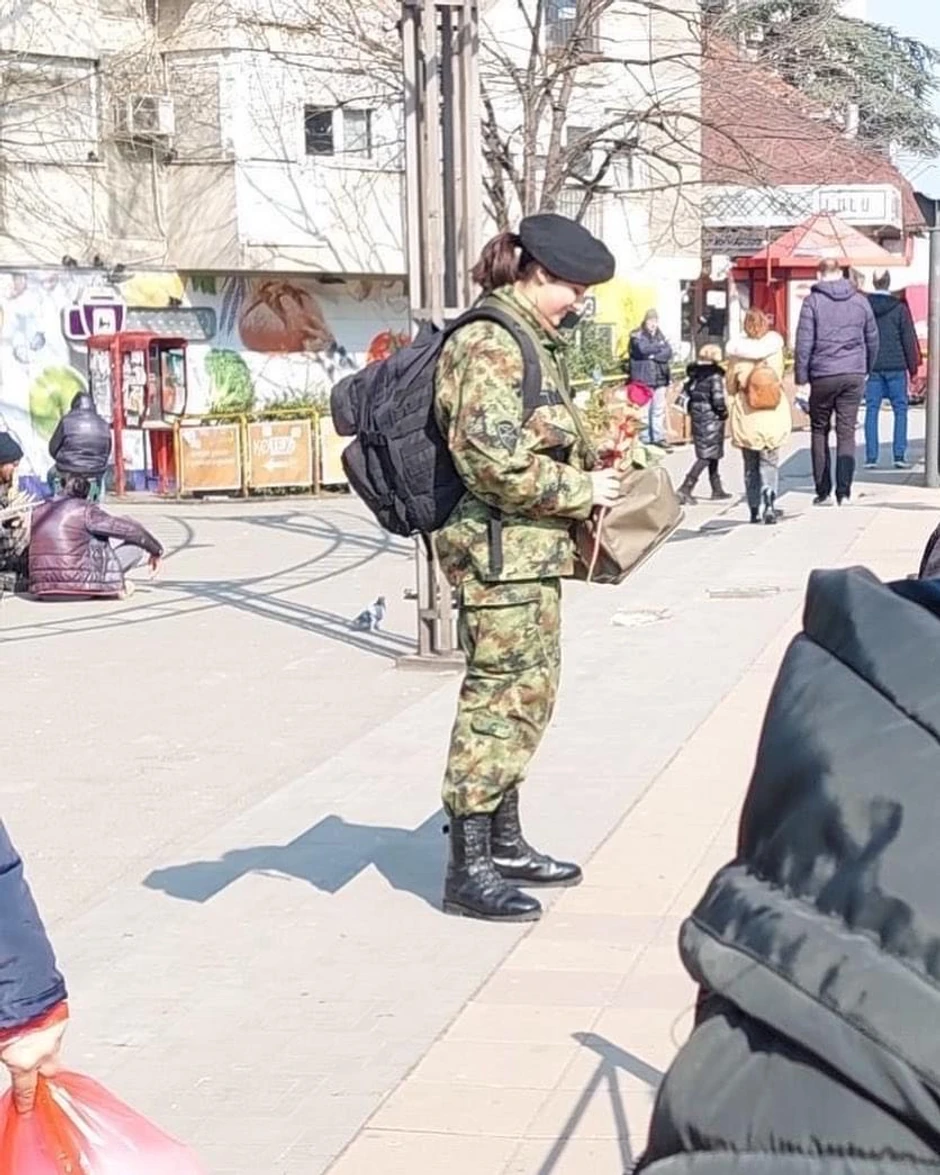 Jedna Beograđanka zabeležila je danas lep i nesvakidašnji prizor oficirke s ružom.