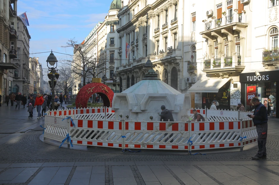 Beograđani su imali prilike da vide da je Delijska česma danas ograđena, a nekoliko majstora radi na mermernim delovima česme.