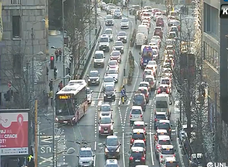 Kako se može videti na gradskim kamerama, vozila idu usporeno kroz Takovsku, Bulevar despota Stefana, Nemanjinu...