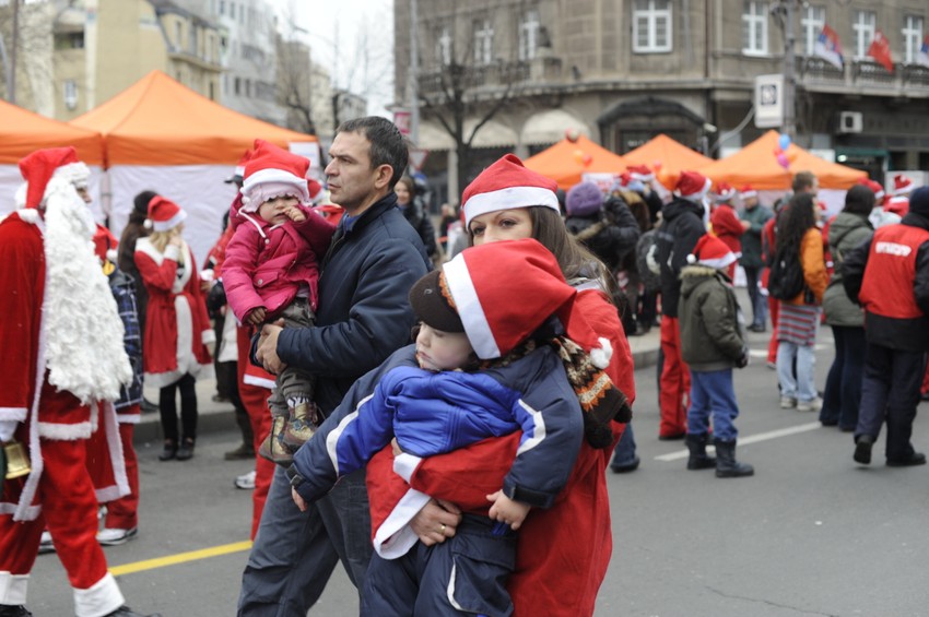 Naime, svi učesnici koji su dobili kostime Deda Mraza besplatno, ostavili su, koliko je ko mogao, prilog namenjen za Nacionalno udruženje roditelja dece obolele od raka (NURDOR).