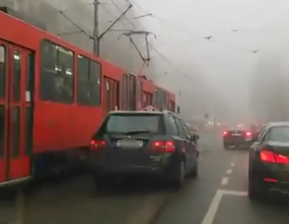 Na ovom snimku jasno se vidi kako tramvaj ne može da krene zbog više vozila koja se nalaze na šinama, iako je u pitanju bulevar koji ima više saobraćajnih traka za automobile.