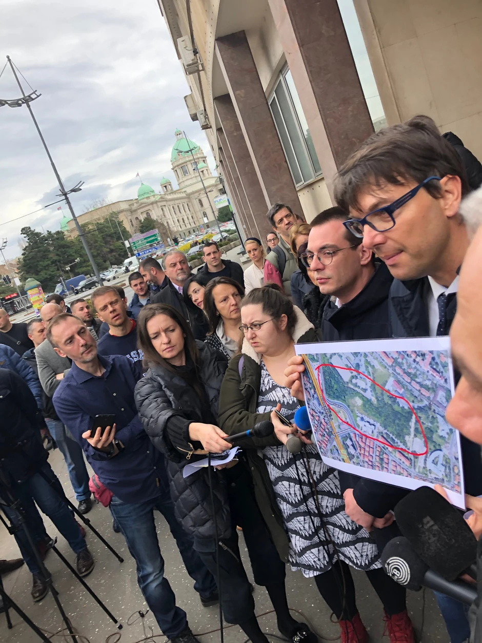 Oni su neposredno pre početka sednice Skupštine grada izrazili nezadovoljstvo zbog, kako su objasnili, "otimanja zelenih površina Beograđanima".