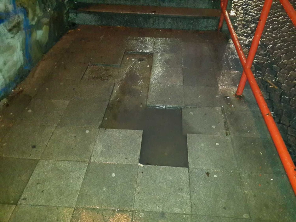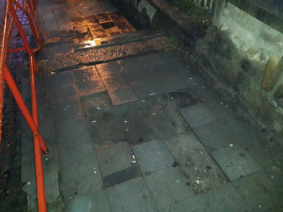 Po kišnom vremenu, na određenim delovima, stepenice su klizave, a u rupama se zadržava voda i formiraju se bare.