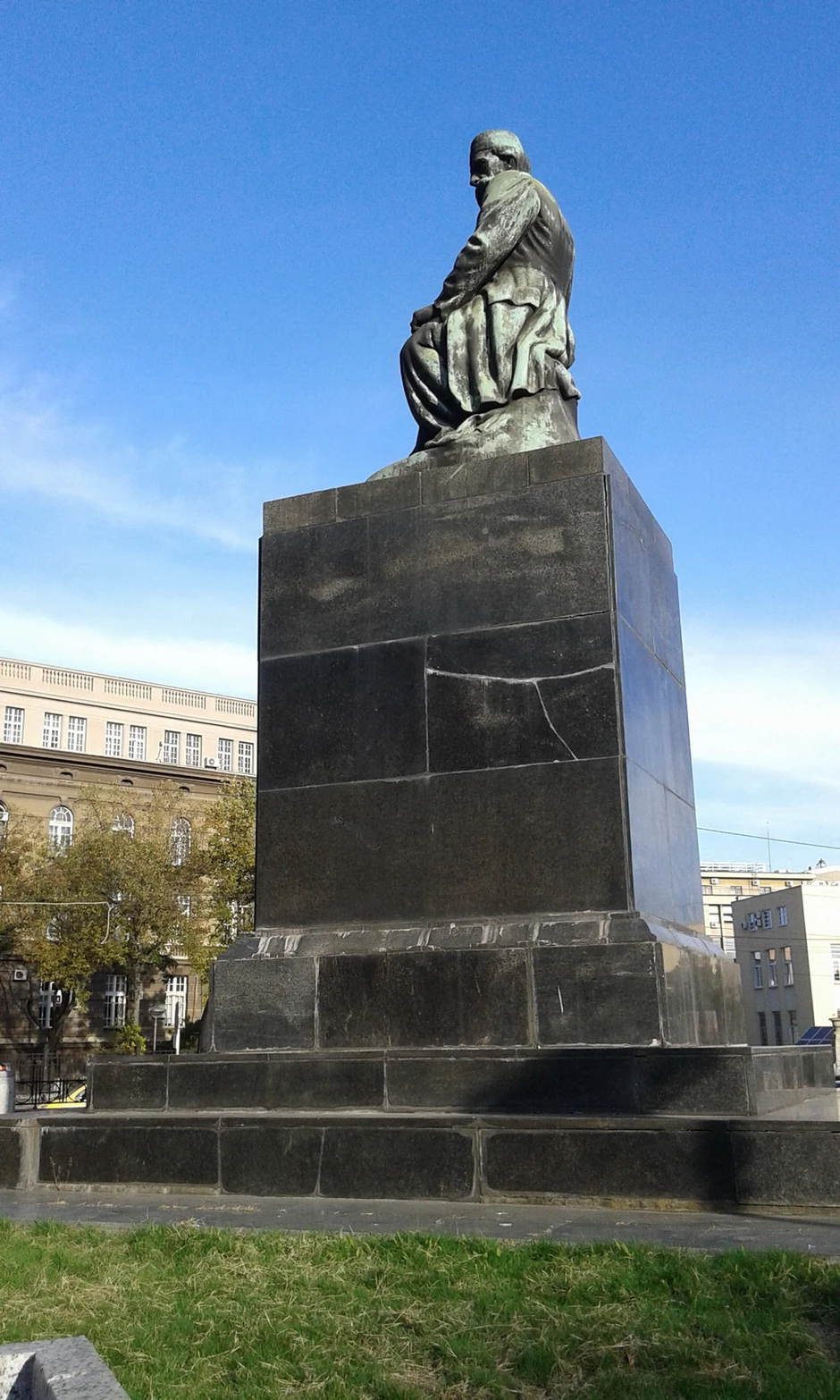 Naime, prilikom prethodne obnove iz 1995. godine - koja je izvođena u sklopu hitnih radova na izgradnji stanice podzemne železnice, podzemne garaže i uređenju širih parkovskih i nadzemnih parternih površina - bronzana skulptura spomenika nije tretirana na adekvatan način, a za oblogu postamenta upotrebljen je kamen lošeg kvaliteta, tako da je usled izloženosti negativnom uticaju atmosferilija došlo do rapidnog propadanja kako skulpture tako i postamenta.