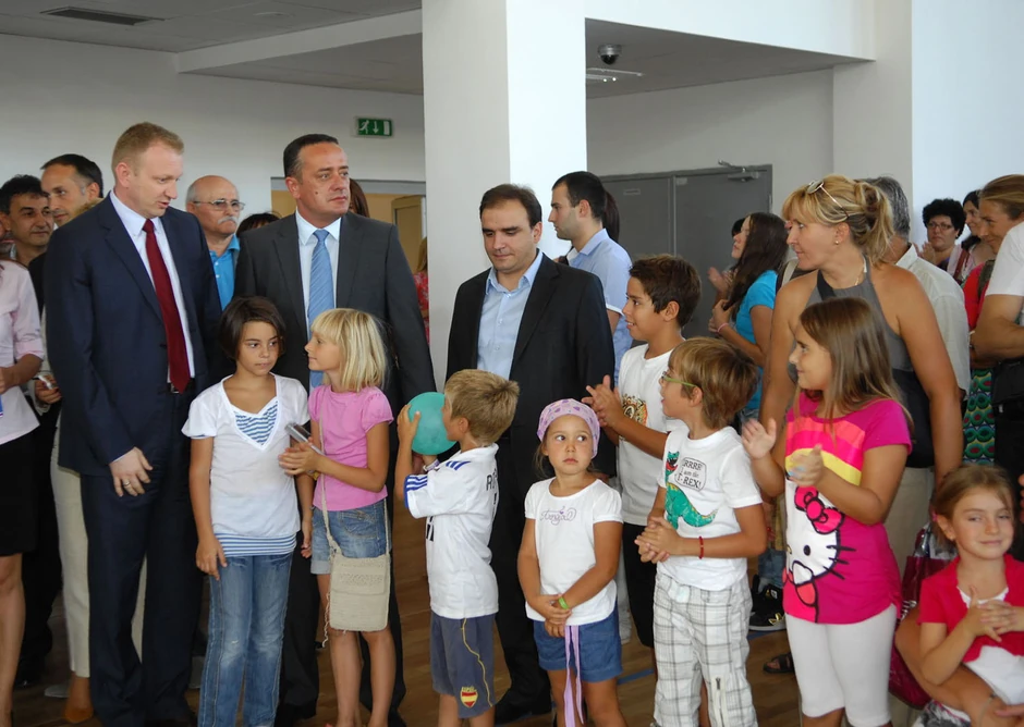 Gradonačelnik Dragan Đilas i predsednik Skupšine grada Aleksandar Antić su obišli školu i uverili se da je ona zaista opremljena modernim kabinetima i učionicama, kao i ormarićima u koje osnovci odlažu svoje knjige.