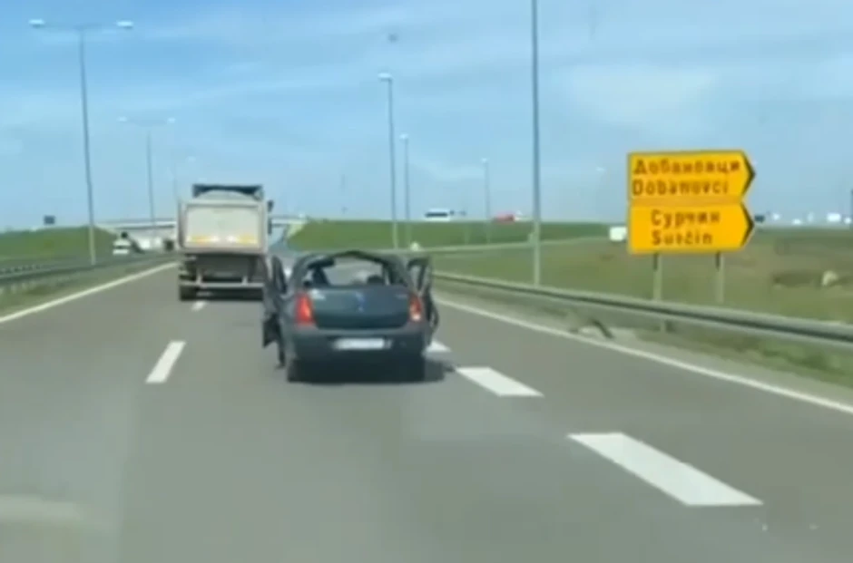 Na društvenim mrežama osvanuo je danas video na kojem se vidi kako jedan hrabar vozač vozi potpuno smrskan auto na autoputu ka Novom Sadu, međutim, na snimku se vidi i kamion koji se kreće preticajnom trakom i zaobilazi ovo uništeno vozilo.