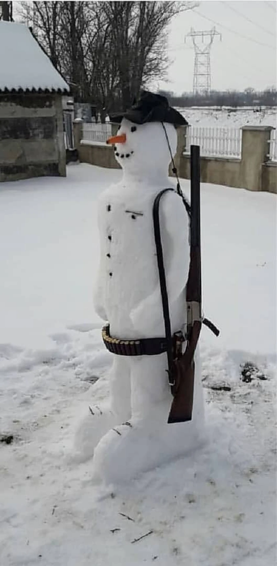 U Obrenovcu je jedno dvorište dobilo snežnog lovca koji spremno čeka da se krene u lov. Njegov vajar je takođe lovac koji ima 23 godine, ali kome očigledno ne manjka kreativnosti.