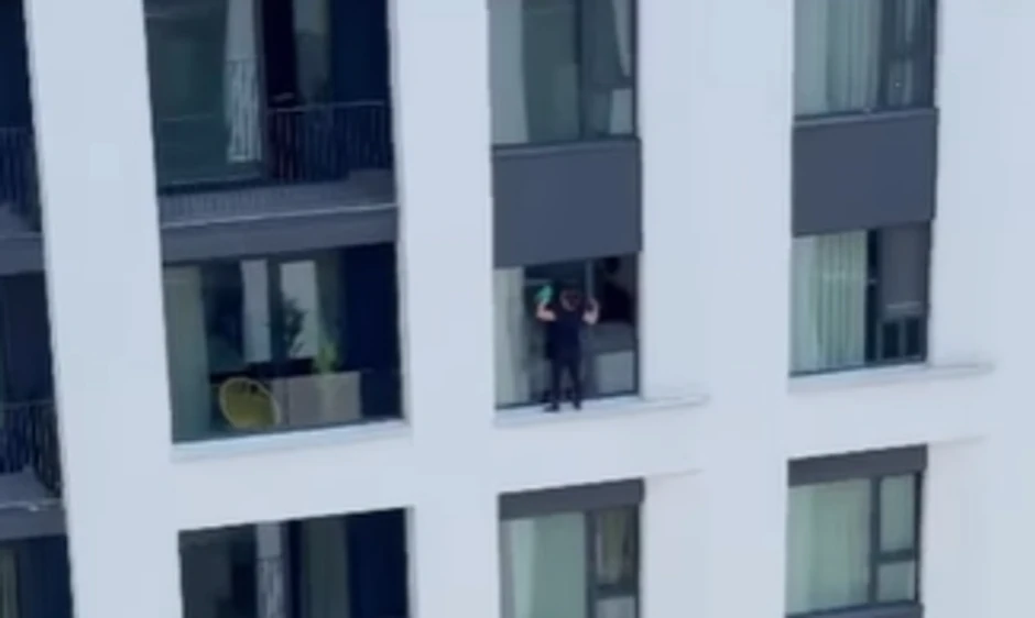 Ova žena pere prozore tako da trenutno dobiješ strah od visine i onaj nelagodan osećaj u kolenima. Sve se dešava na 11. spratu zgrade, prozori su ogromni, a ona stoji sa spoljašnje strane, na simsu uskom otprilike kao dužina njenih stopala!