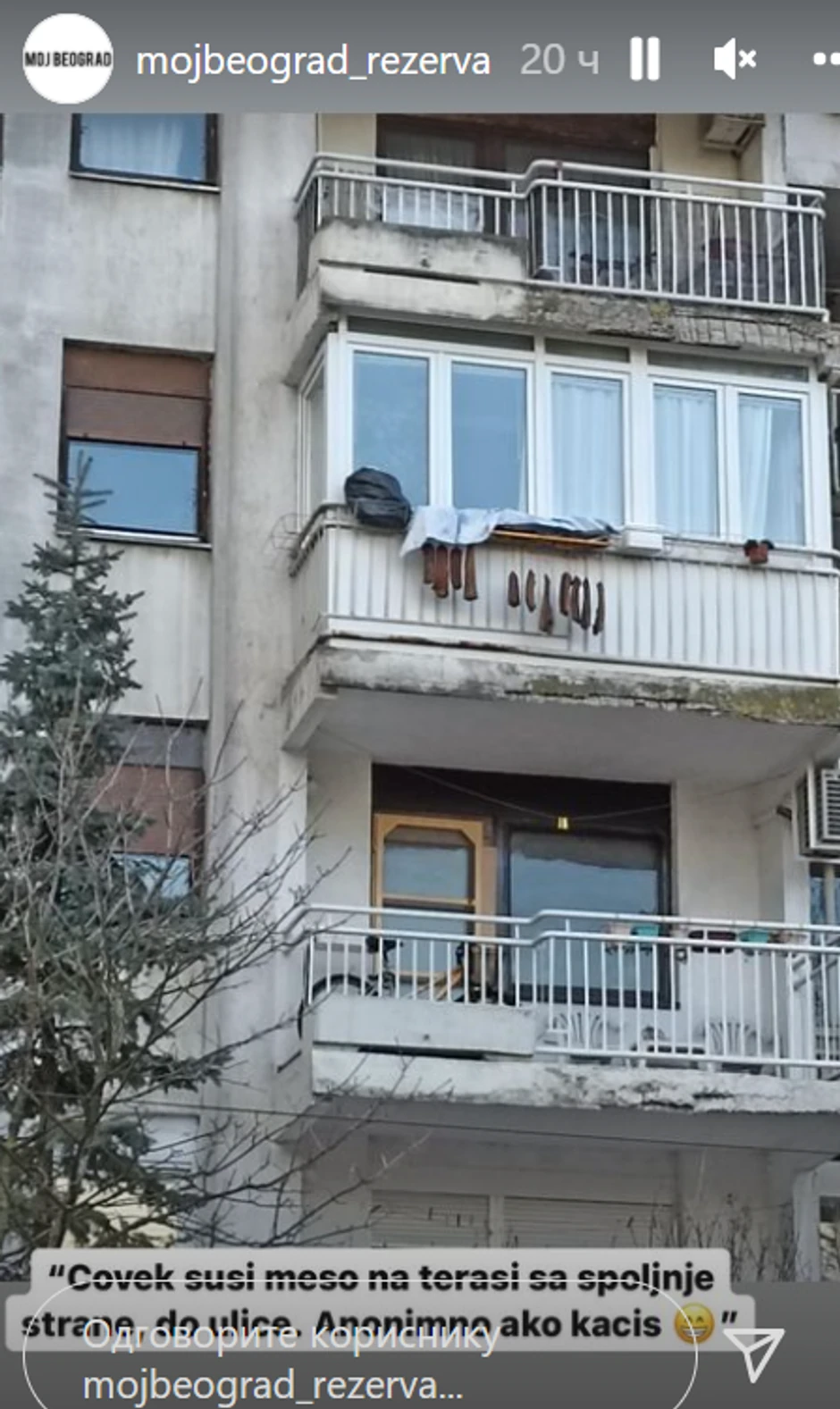 - Čovek suši meso na terasi sa spoljne strane, do ulice - krako je napisao.