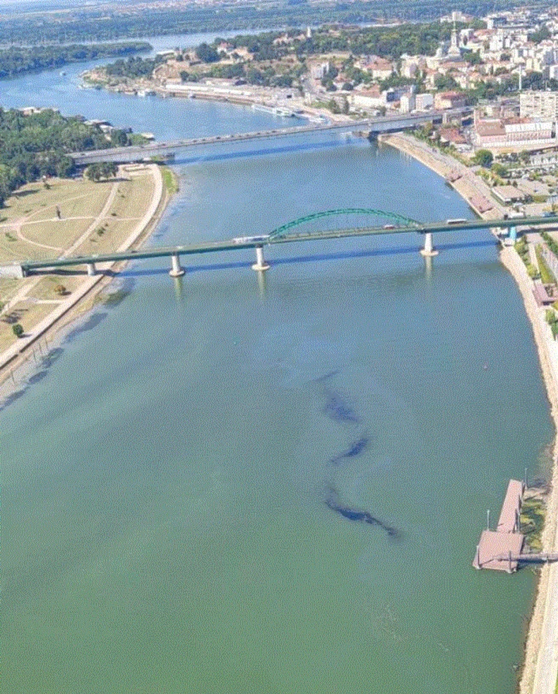 Kako se da primetiti, u reku je prosuta crna tečnost koja podseća na naftu.