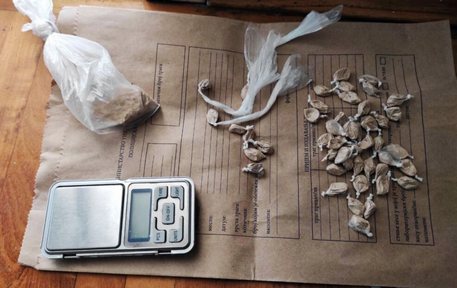 Policija je u opštini Palilula pretresom stana i drugih prostorija koje koristi N. J. zaplenila 56 kesica sa praškastom materijom za koju se sumnja da je heroin, dok je kod A. J. pronašla vagicu za precizno merenje, kao i više praznih kesica.