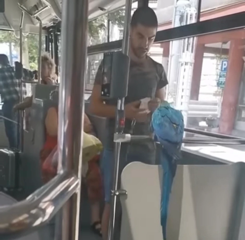 Vlasnici pasa imaju običaj da unesu svoje ljubimce u gradski prevoz, ali papagaj još nije viđen.