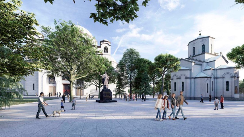 - Ove jeseni, konačno, posle 85 godina od početka radova i 179 godina otkako je dubrovački Srbin Matija Ban prvi javno izneo ideju da se na Vračaru izgradi svetosavski hram, Hram Svetog Save će biti završen. Deo tog posla je i uređenje parka ispred Hrama Svetog Save koje nam predstoji. Autori ovog jedinstvenog rešenja su akademik Branislav Mitrović i Dejan Miljković. Novi park će imati mnogo više zelenila, skoro stotinu novih stabala, parternu fontanu, nove granitne ploče. Uređenje ovog parka finansiraće Republika Srbija i Grad Beograd, a u čitav proces uključena je Srpska pravoslavna crkva – rekao je Vesić.