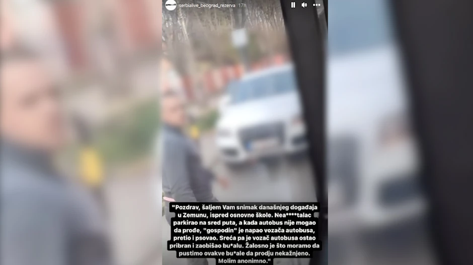 U blizini jedne osnovne škole u Zemunu juče je bio blokiran saobraćaj, kada je bahati vozač stao nasred ulice i zauzeo deo puta, a u tom momentu naišao je autobus, koji zbog ovog nepropisnog parkiranja nije mogao da prođe.