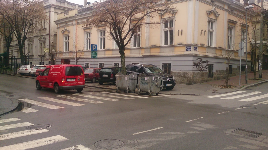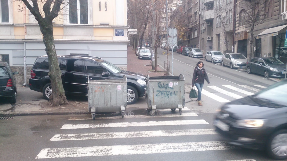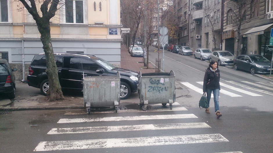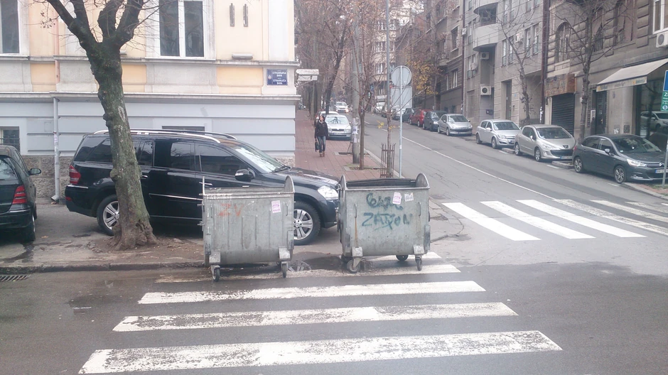 I radnici “Gradske čistoće” dobili su svoj pešački prelaz. Na raskrsnici Dobračine i Strahinjića bana toliko su prisvojili “zebru” da jedino pešaci sa kesama smeća u rukama mogu da je koriste. Obični prolaznici zaobilaze i pešački prelaz i dva kontejnera posred njega.