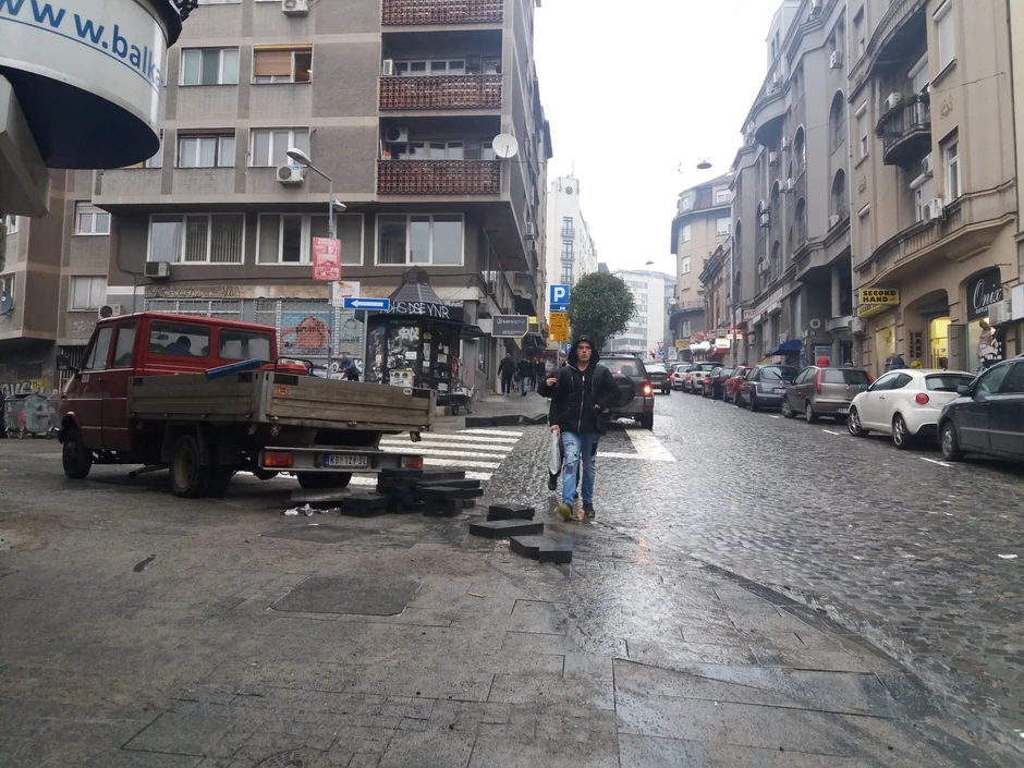 Radnika koji su angažovani na obnovi ove ulice danas nije bilo, no ipak ne može se sa sigurnošću reći da li je njihovo prisustvo izostalo zbog vremenskih neopogoda ili zato što su radovi privedeni kraju, ali i ne završeni u potpunosti.