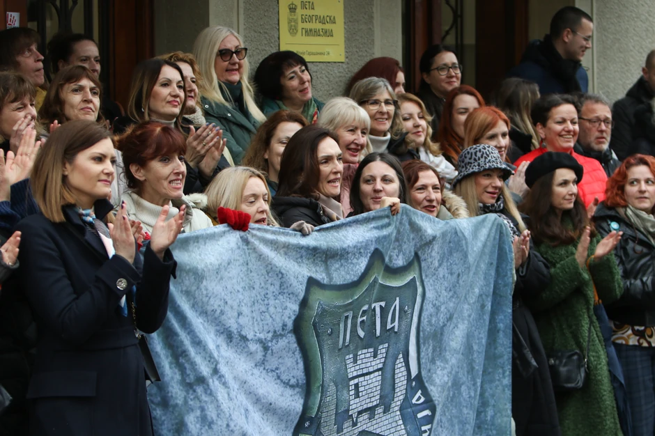 Učenici Pete beogradske gimnazije koji su u blokadi, pre dva su uz podršku roditelja i bivših đaka gimnazije napravili "bučan doček" za novu direktorku, a kako su istakli, taj protest nije bio usmeren protiv nje, nego protiv Ministarstva prosvete koje dovođenjem nove direktorke pokušava da "normalizuje nastavu".