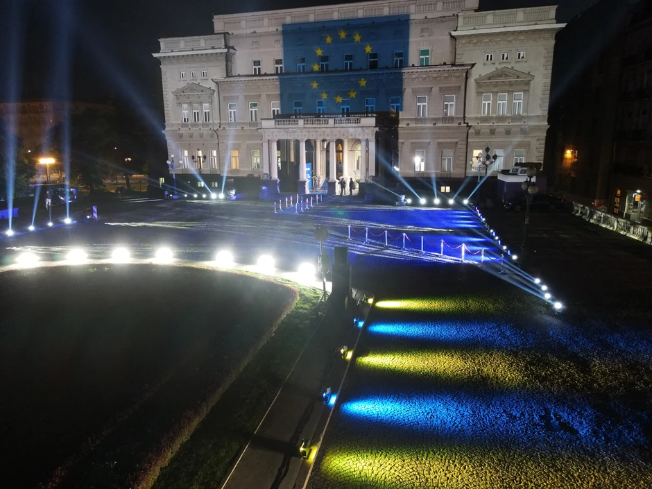 Povodom obeležavanja "Dana Evrope" najznačajnije znamenitosti nače prestonica sinoć bila obasjane simboličnom plavom bojom.