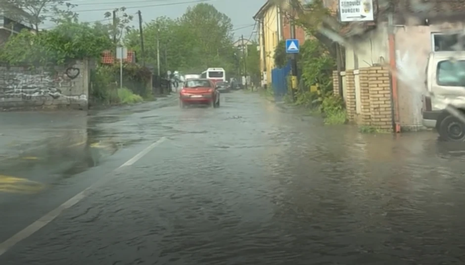 Kako se vidi na snimcima, voda se izlila iz kanalizacije, izlazi iz šahta, a vozila se otežano kreću.