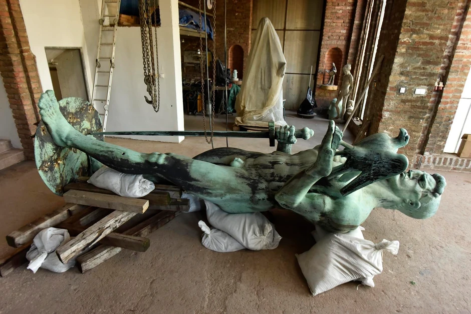 Pošto su mu na Beogradskoj tvrđavi postavili "dvojnika", u vidu crteža na velikom platnu, "Pobednik" može mirno da vida svoje rane u ateljeu vajara Zorana Kuzmanovića u Smederevu.