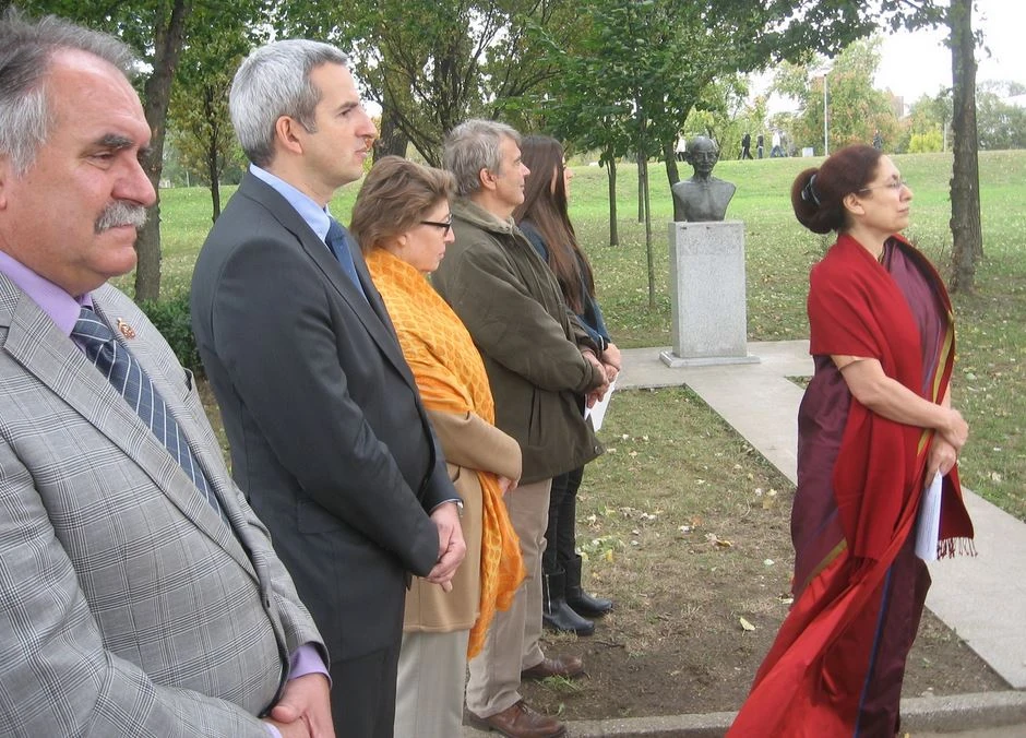 - Na današnji dan odajemo poštu i počast velikom čoveku, vođi i misliocu, koji je obeležio 20. vek. Njegova borba nenasiljem, za slobodu njegovog naroda i stvaranje indijske države, primer je kako se može snagom izdržljivosti, strpljenjem i velikom ljubavlju doći do cilja, a da se pri tom sačuvaju životi i čitav jedan narod. Obeležavamo dan nenasilja u svetu, s porukom da i naš narod ovde u Srbiji ima mir i da svoju slobodu ne mora, kao što je to do sada bio slučaj, da plati velikim brojem života. Predanost miru i slobodi je nešto što krasi naš narod i to je velika veza između srpskog i indijskog naroda - rekao je Mladenović.