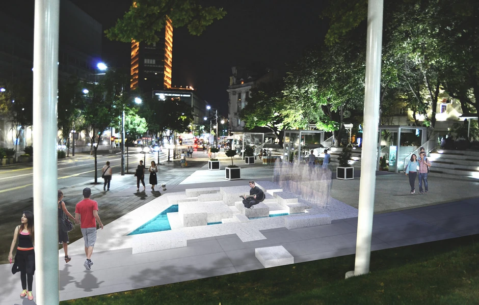 - Fontana će biti površine četrdeset kvadratnih metara, a biće sastavljena od dve celine. Jedna je plato sa vertikalnim mlazevima između kojih može i da se prolazi, a druga se sastoji od kamenih kubusa i pet malih bazena različitih dimenzija sa plitkom vodom. Fontana je projektovana kao prelivna, a mlaznice će biti u tri reda sa po šest, pet i četiri mlaznice, koje će biti postavljene naizmenično. Režim rada predviđa mogućnost podešavanja visine mlazeva od 30 do 120 centimetara - precizirao je Vesić.