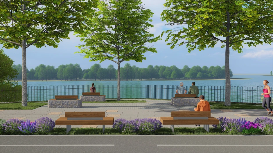 Novoprojektovano rešenje podrazumeva razdvajanje glavne pešačke zone i biciklističke staze, trakom zelene površine, kako bi se pešači odvojili od biciklista čime se, osim estetskog doživljaja, ovaj prostor poboljšava i sa aspekta bezbednosti korisnika zelene površine.