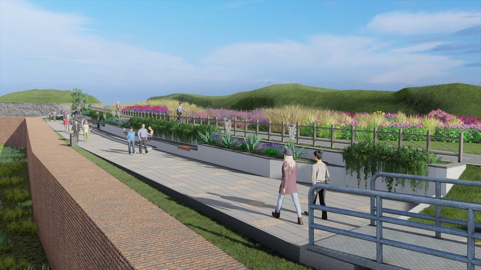 Predviđeno je formiranje perenjaka u slobodnim zelenim površinama duž biciklističke staze, kao i u zelenoj traci između pešačke i biciklističke staze. U okviru betonske kaskadne zaštite nasipa planirano je ozeleljavanje žardinjera perenama i sadnja sadnice ukrasnog drena. Duž zelene površine iznad kaskadne zaštite planirana je sadnja visećeg ruzmarina. S obzirom na položaj podzemnih utvrđenja beogradske tvrđave, planirana je sadnja osam komada drvorednih sadnica visokih lišćara (četiri koprivića, tri breze i platan) u delu gde je dozvoljeno. Čitav prostor biće oplemenjen sa 83 komada lišćarskog šiblja, 4.664 komada različitih vrsta perena, 717 komada različitih vrsta ukrasne trave, 78 komada lukovice i 60 komada poleglih četinara. Formiranje travnjaka predviđeno je setvom mešavine travnog semena na ukupnoj površini od 4.643,06 metara kvadratnih.