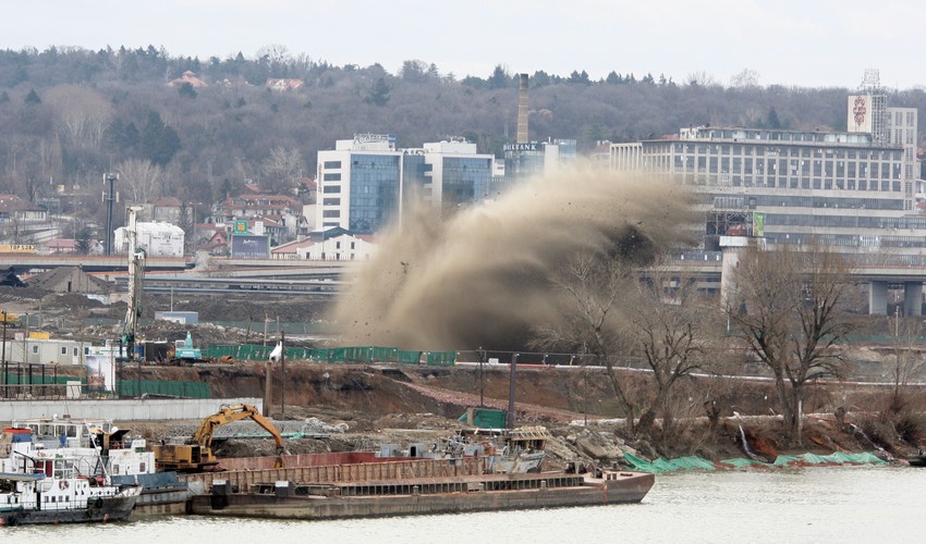 Avionska bomba iz Drugog svetskog rata pronađena na gradilištu "Beograda na vodi" deaktivirana je danas između 9.15 i 9.24 sata. Neutralisanje bombe trajalo je svega 10 minuta, pre čega su se začule sirene za uzbunjivanje, a nakon ekslozije osetilo se i blago podrhtavanje tla u Beogradu. Prilaz na bliže od 500 metara do bombe nikome nije bio dozvoljen, ali se eksplozija "grdosije" teške pola tone sa 250 kilograma eksploziva mogla videti sa druge strane reke i iz pojedinih delova grada.